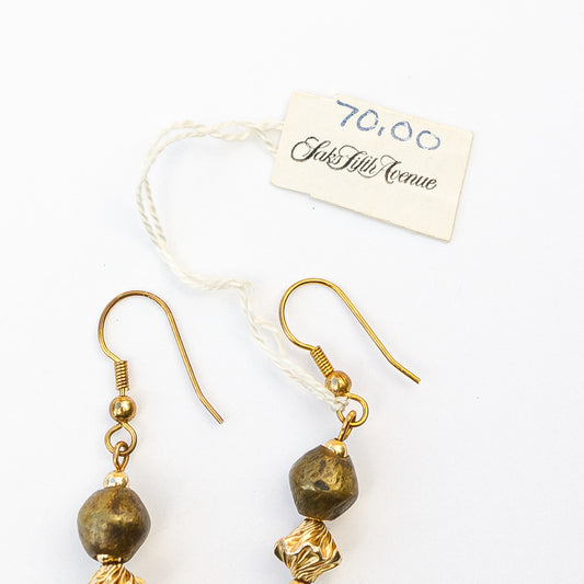 1980's Saks Fifth Avenue Gold Plated Malachite and Lampwork Beaded Earrings