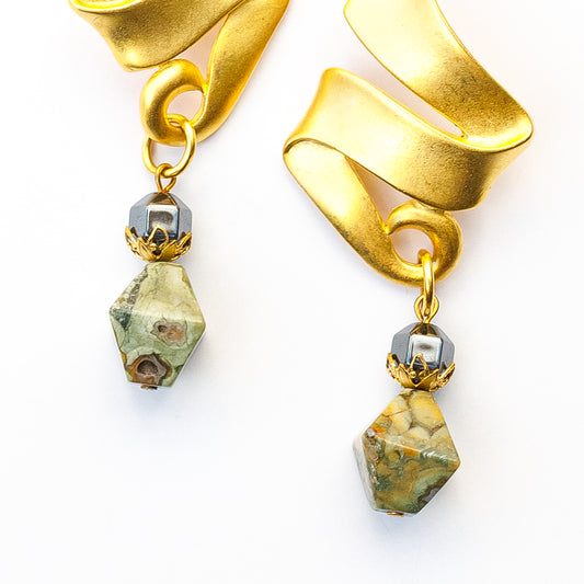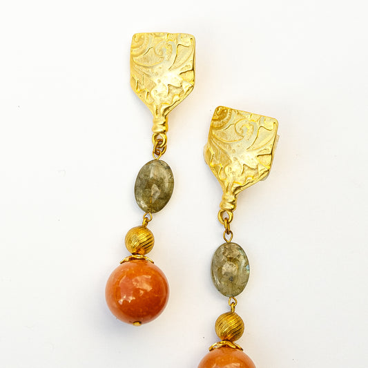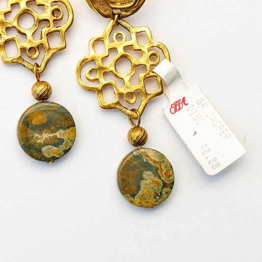 1980's Saks Fifth Avenue Gold Plated Jasper Earrings