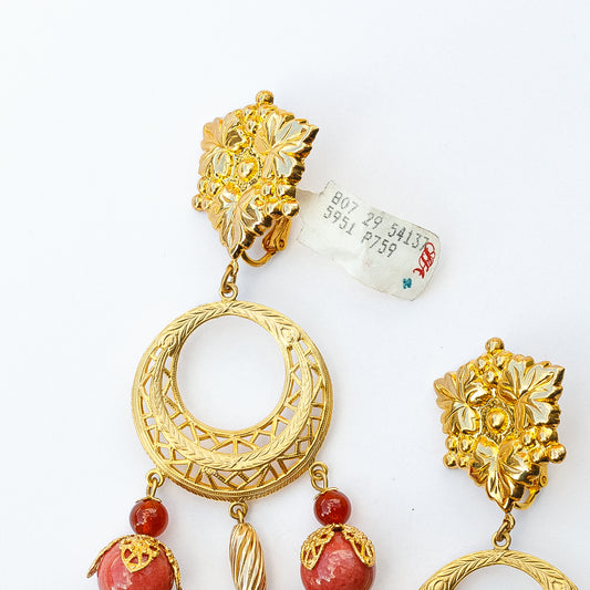 1980's Saks Fifth Avenue Gold Plated Carnelian and Quartz Earrings