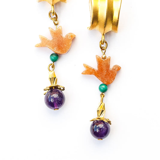 1980's Saks Fifth Avenue Gold Plated Agate and Malachite Earrings