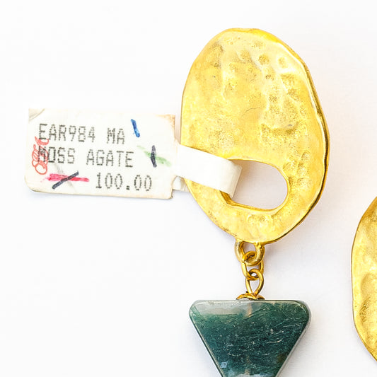1980's Saks Fifth Avenue Gold Plated Moss Agate Earrings