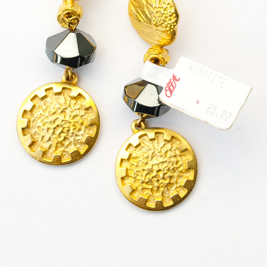 1980's Saks Fifth Avenue Gold Plated Hematite Earrings