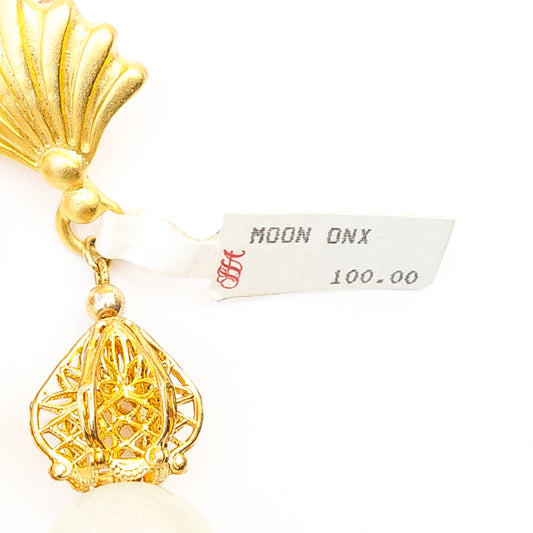 1980's Saks Fifth Avenue Gold Plated Moon Onyx Earrings