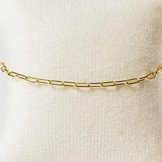 Gold-Tone Paperclip Chain Bracelet with Clear Stone in Bezel