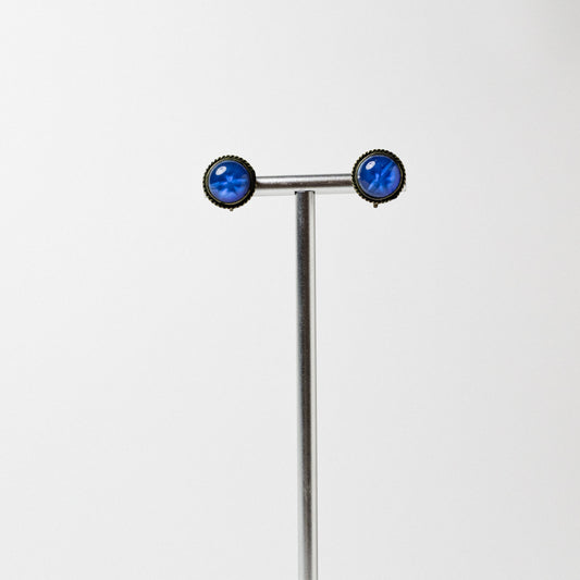 Vintage Simulated Star Sapphire Cabochon Screw Back Earrings