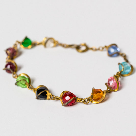 Vintage Rainbow Gold-Tone Metal-Wrapped Beaded Bracelet