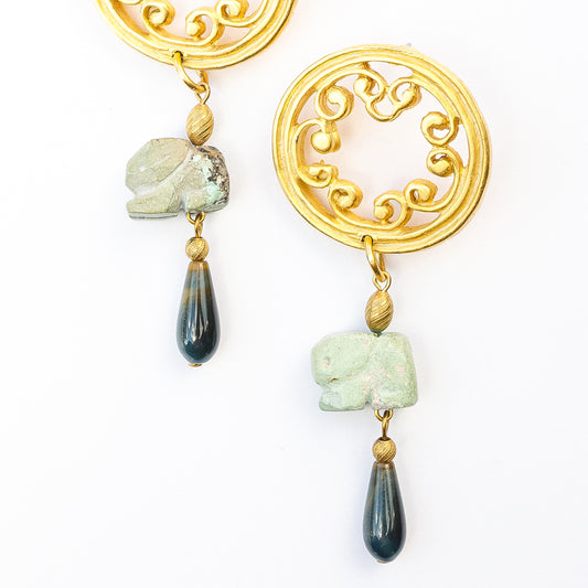 1980's Saks Fifth Avenue Gold Plated Stone Rabbit Bead Earrings