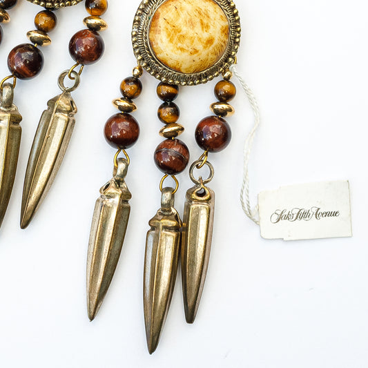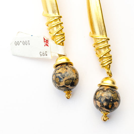 1980's Saks Fifth Avenue Gold Plated Stone Beads Earrings
