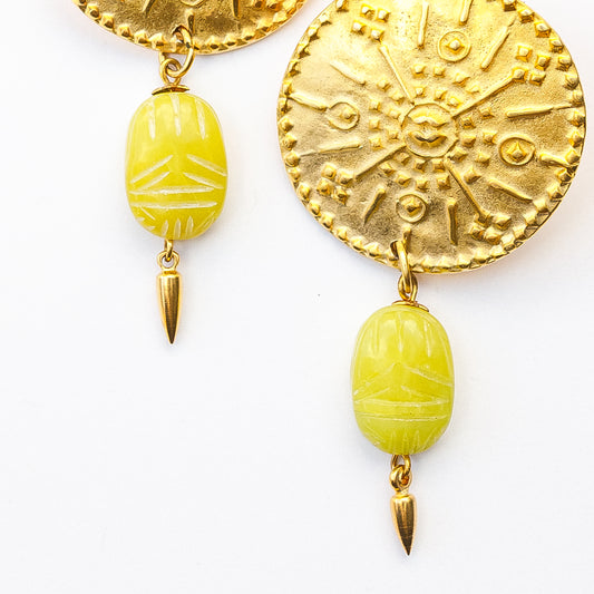 1980's Saks Fifth Avenue Gold Plated Stone Scarab Earrings