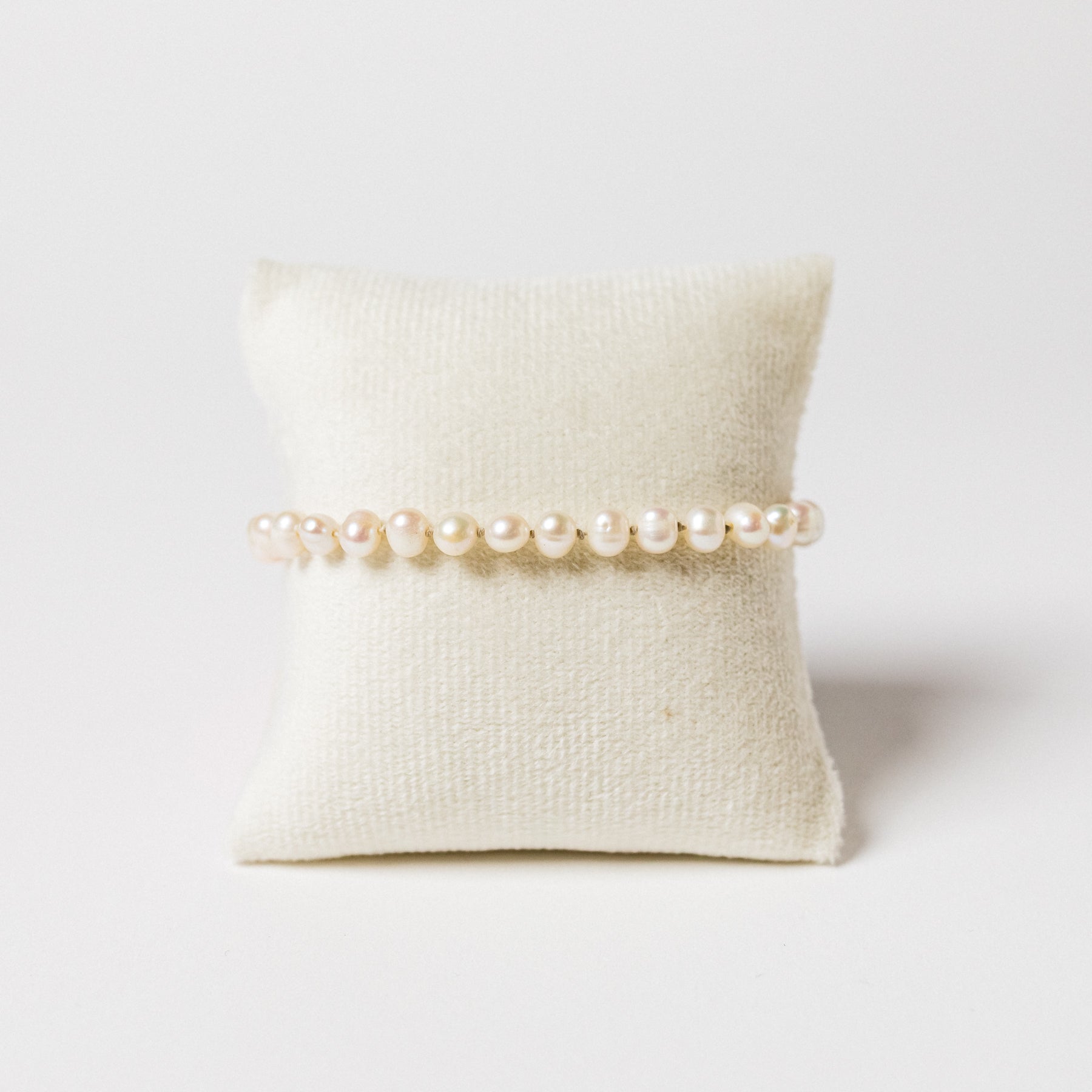 Beautiful knotted cultured pearl bracelet with 14K gold-plated hardware