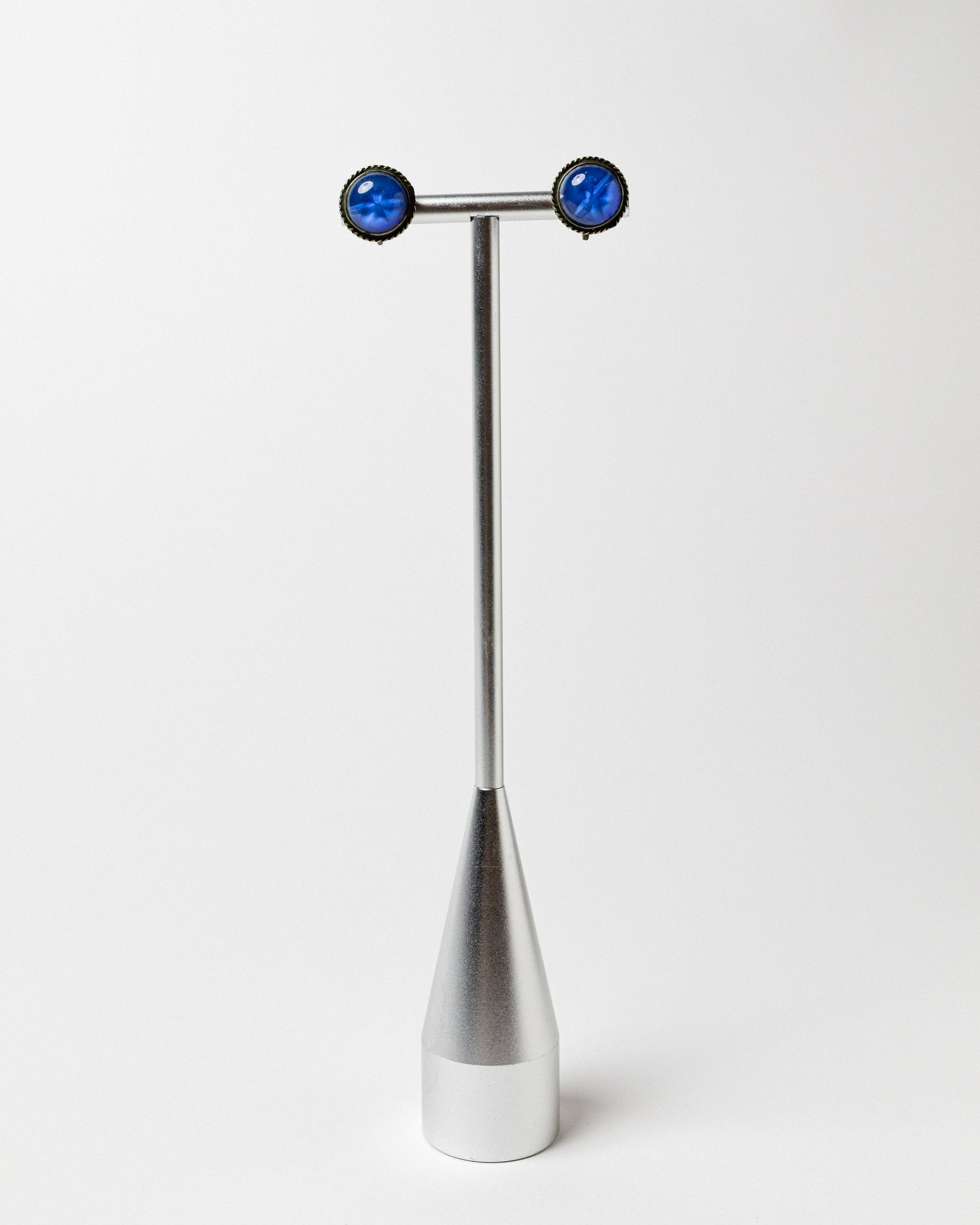 Vintage Simulated Star Sapphire Cabochon Screw Back Earrings